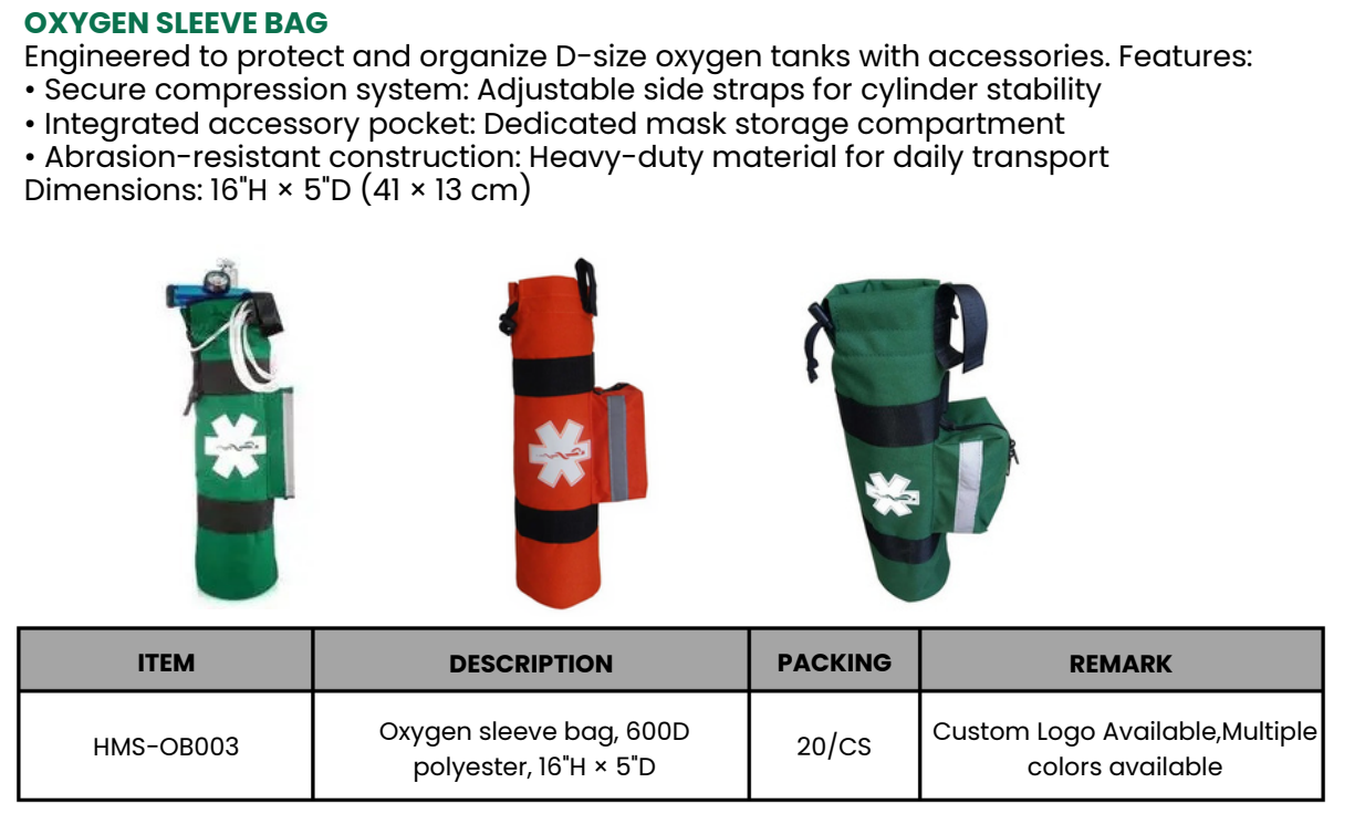 Your Location:Home >Products >Emergency Medical Supplies >EQUIPMENT BAGS & KITS >OXYGEN BAGS >OXYGEN SLEEVE BAG