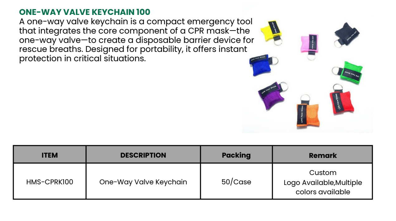 Your Location:Home >Products >Emergency Medical Supplies >BREATHING & RESPIRATORY >ONE-WAY VALVE KEYCHAIN 100