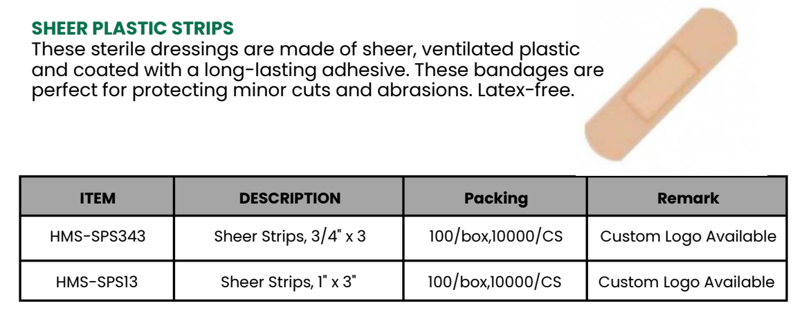 Your Location:Home >Products >Emergency Medical Supplies >WOUND CARE & FIRST AID >ADHESIVE BANDAGES >SHEER PLASTIC STRIPS